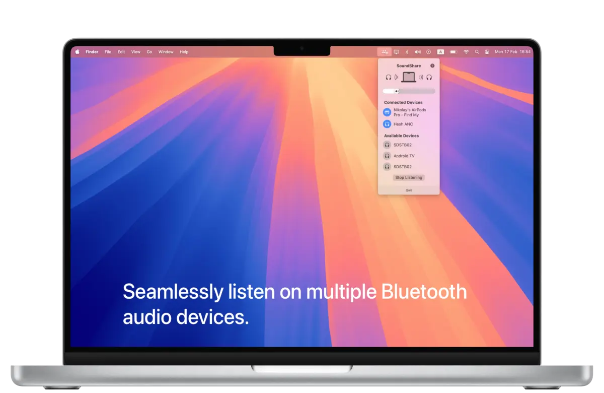 Share your audio with multiple Bluetooth devices simultaneously, just like on iOS, now available on macOS.